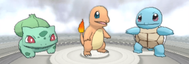 You’ve just woken up in your bedroom in Pallett Town in the Kanto Region, and it’s time to go meet Professor Oak and choose your first partner Pokémon. At the beginning of most Pokémon games, you’ll be given a choice between three of what are known as ‘starter Pokémon’; a choice between a Fire type, a Water type, and a Grass type. In these first games these were Bulbasaur, Charmander, and Squirtle. So let’s look at these first, shall we?